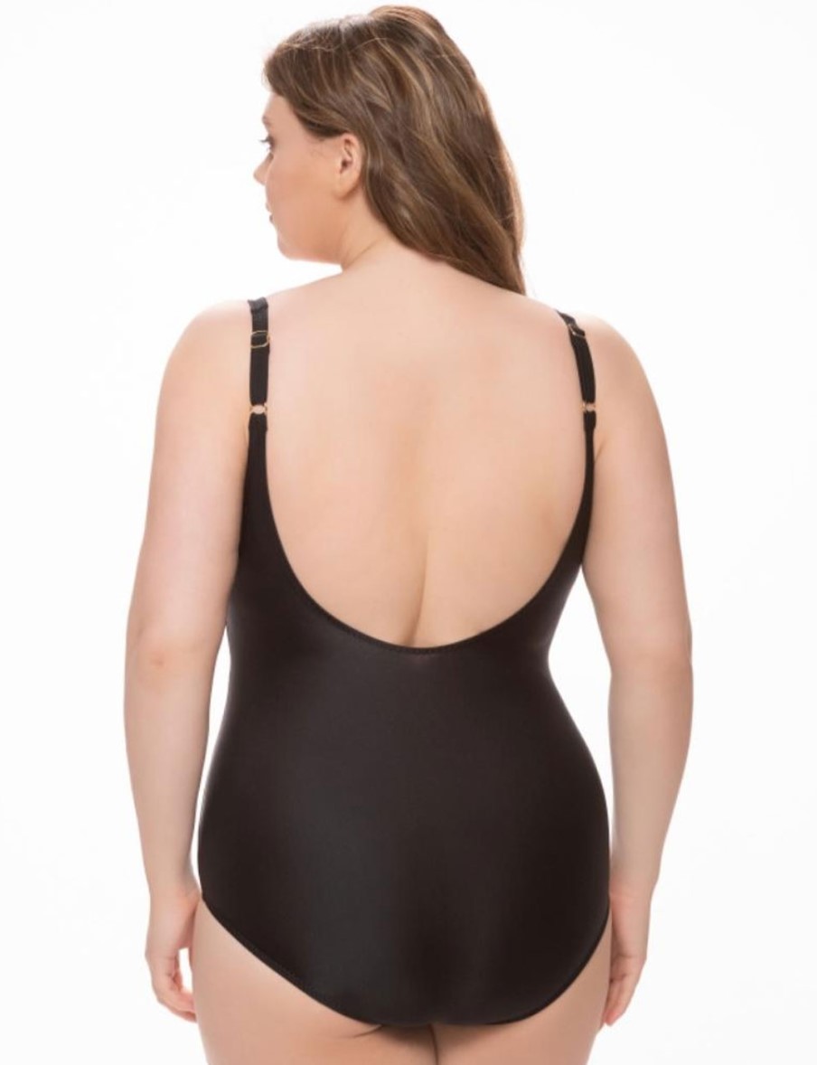 Сплошной купальник выполнен в сочетании однотонной и принтованной ткани, что позволяет создать красивый силуэт. Внутри - лиф из подкладочной ткани на каркасах, который позволяет поддерживать грудь любого размера. Бретели с регуляторами и широкая металлическая застежка позволяет идеально подогнать посадку купальника на любую фигуру. Купальник сзади имеет вырез округлой формы средней глубины. Перед купальника дублирован подкладочной тканью.