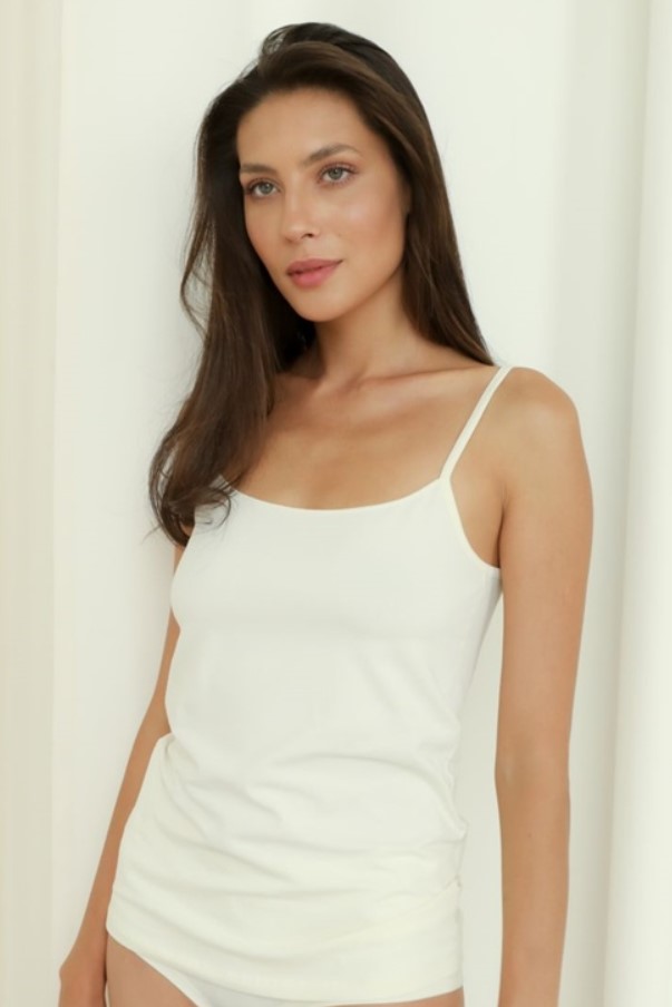 Майка(топ) из хлопка на тонких регулируемых бретелях, с деликатным швом по верху.
