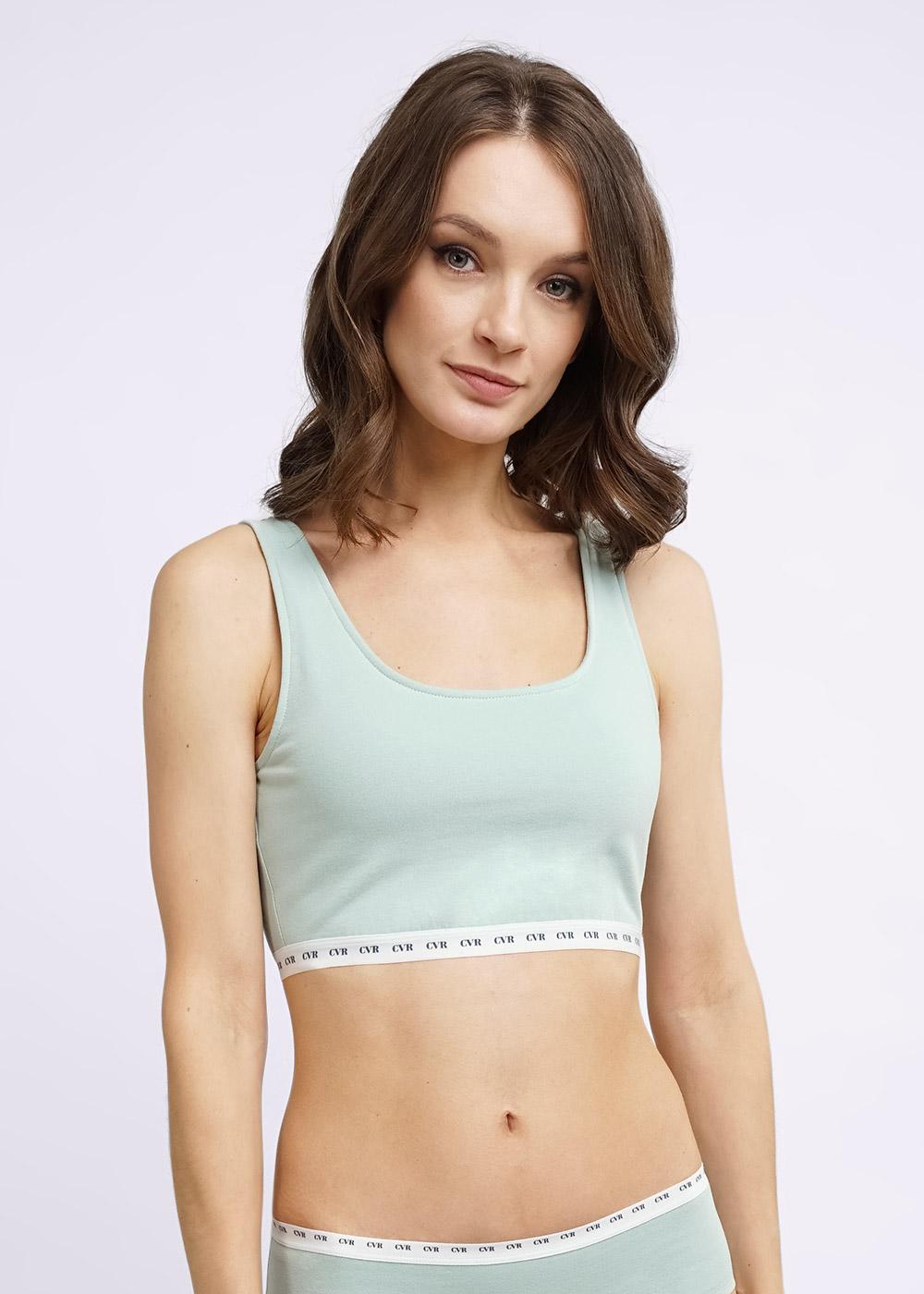 Универсальный топ из трикотажного полотна. Широкая бретель. округлый вырез горловины. По низу широкая резинка.