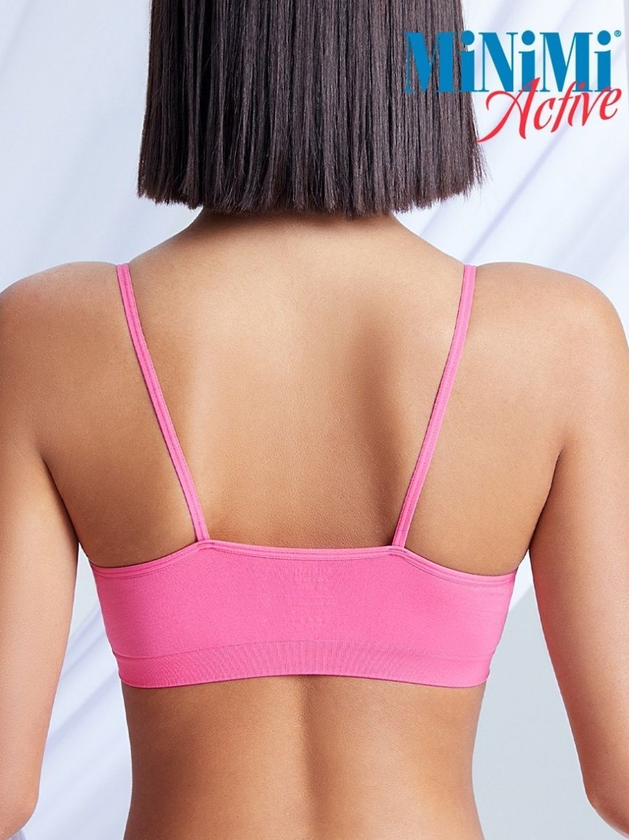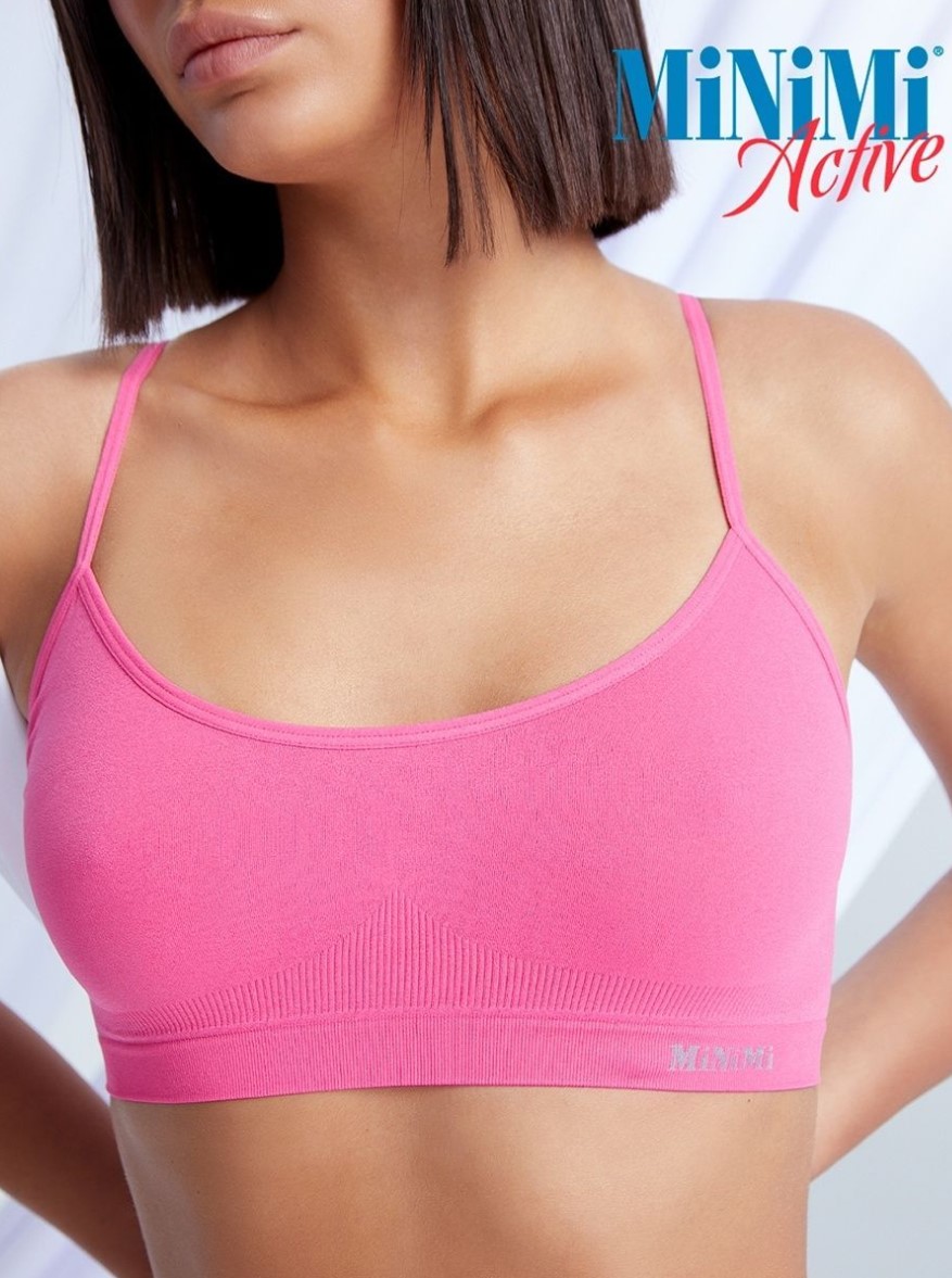 Топ женский спортивный MiNiMi Active MA121 на тонких бретелях, из микрофибры. Материал обладает гладкой текстурой, приятно ощущается на теле, превосходно пропускает воздух и влагу, хорошо сохраняет форму и цвет. Бесшовная технология производства Seamless обеспечивает комфортное облегание благодаря отсутствию вертикальных швов и вывязанным переходам в области груди. Универсальный топ короткий MiNiMi Active отлично подходит на каждый день, сочетается с различным гардеробом - от спортивного до городского.