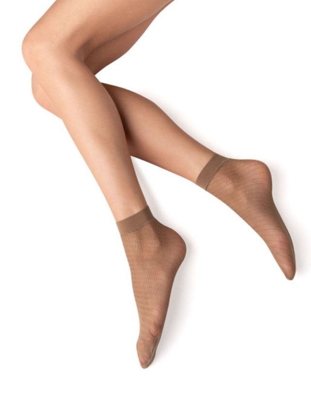 Женские фантазийные носки в сетку с рисунком диагональ. Широкая удобная резинка и укрепленный мысок создают дополнительный комфорт. Благодаря особенностям плетения, носочки менее подвержены появлению затяжек и дольше сохраняют прочность.