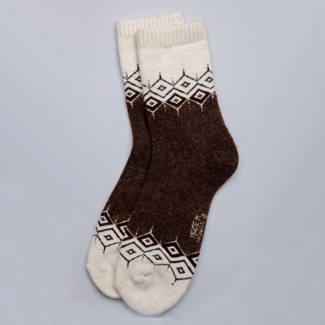 Носки из натуральной монгольской шерсти. Носки плотно облегают ногу, их удобно носить даже с зимней обувью, носки не толстые и не будут стеснять движение. На подошве используется технология усиления толщины материала (двойная вязка). Носки прослужат долгое время. Тёплые уютные носки сохранят ноги в тепле и сухости в любое время года, Цвет шоколадный/молочный, с тематическим узором.