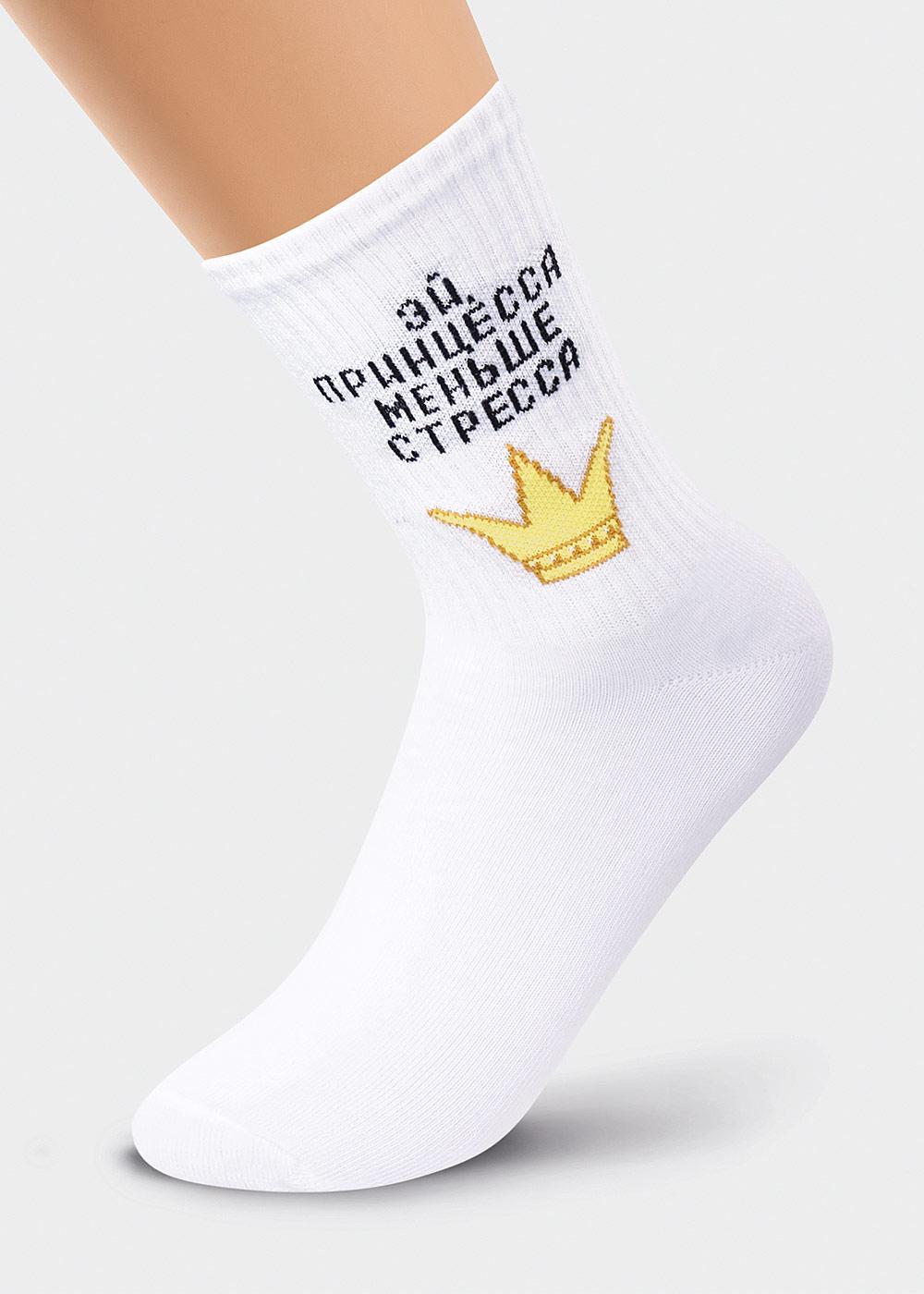 Стильные женские носки с удлиненным ластичным паголенком. С веселым рисунком и забавным текстом: эй, принцесса, меньше стресса.