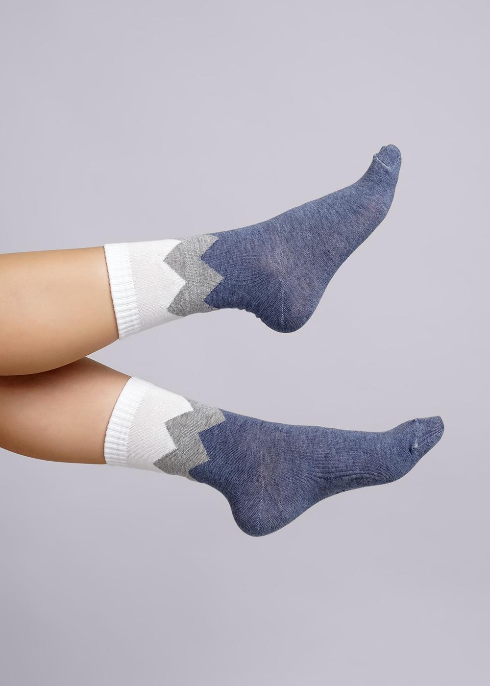 :енские длинные носки с геометрическим рисунком, полоска выполнена из люрекса.