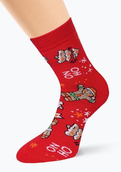 Плюшевый новогодний женский носок с набивным рисунком " имбирный пряник".
