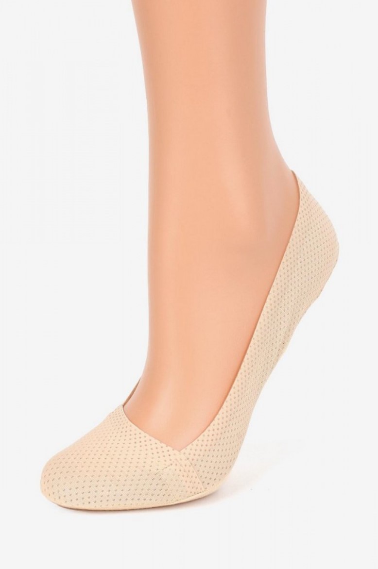 Эластичные подследники из перфорированного трикотажа. Бесшовные, что обеспечивает дополнительный комфорт при ношении. Отделка не врезается в ногу и не сжимается. Ножки не скользят, благодаря силикону по краям. Они предотвращают трение, идеально подходят для балерин! Стопа гладкая, хлопковая.
