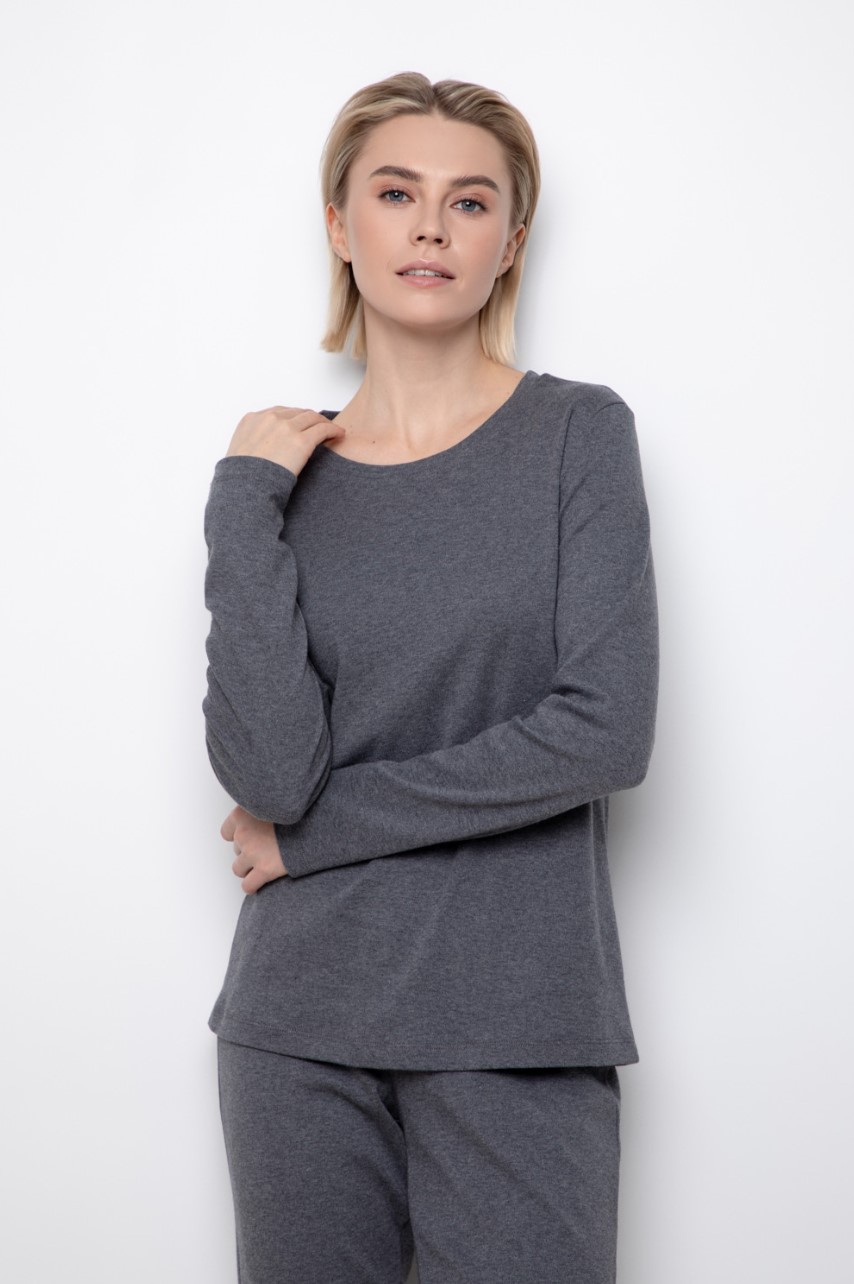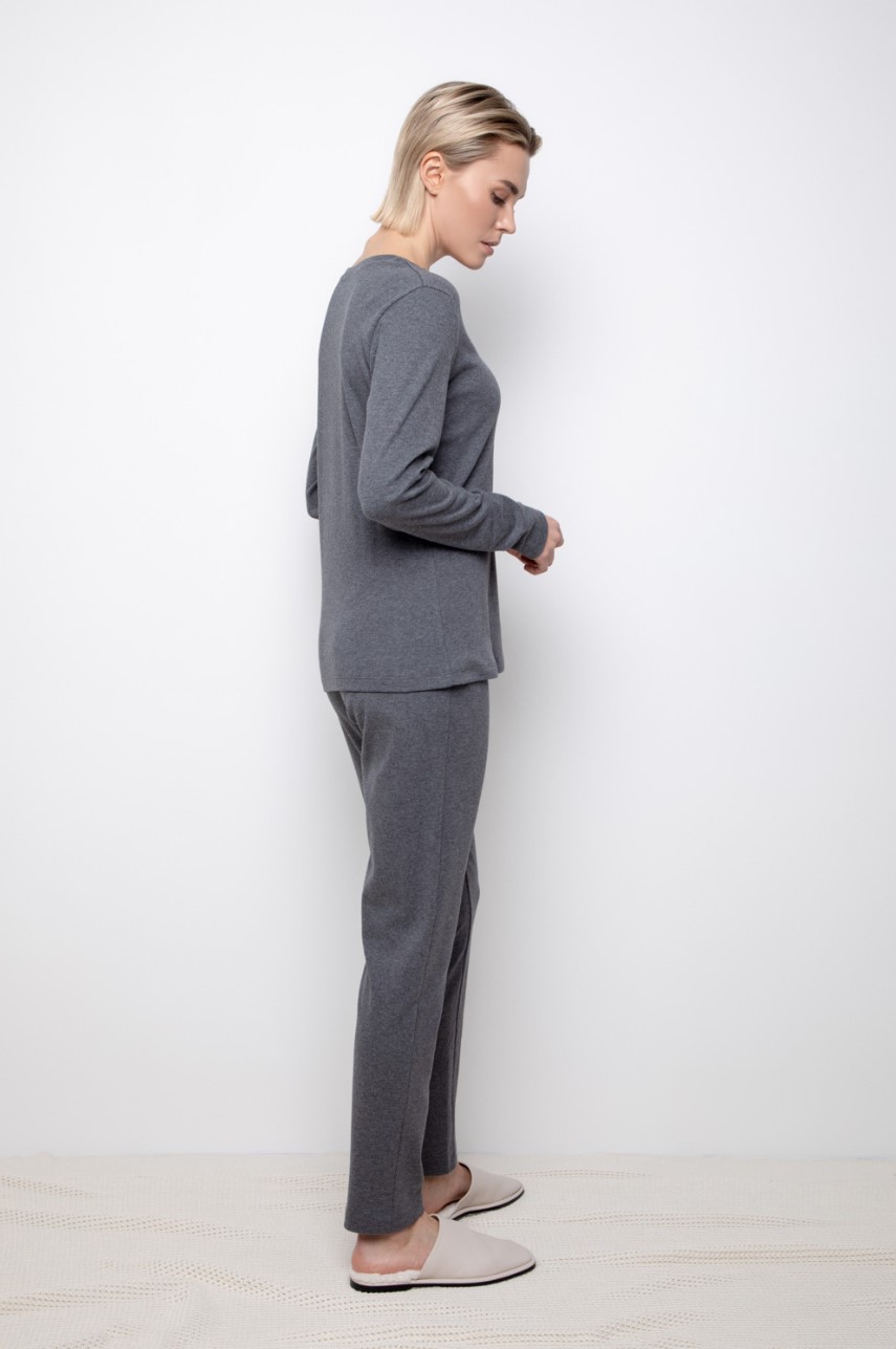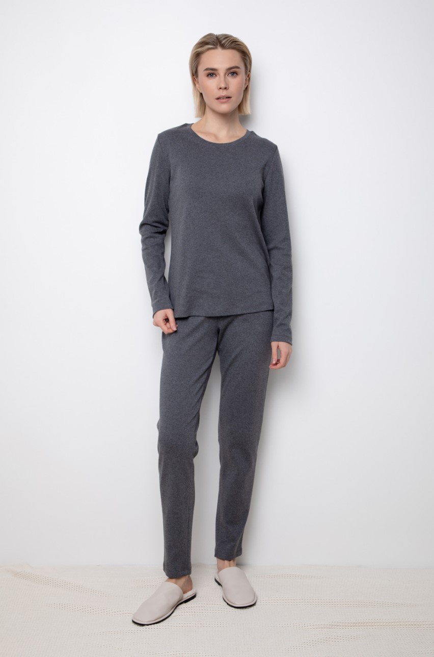 Комплект для сна и отдыха из натурального хлопка. Джемпер с длинными рукавами комфортно садится по фигуре. Брюки полной длины с мягким поясом на резинке.