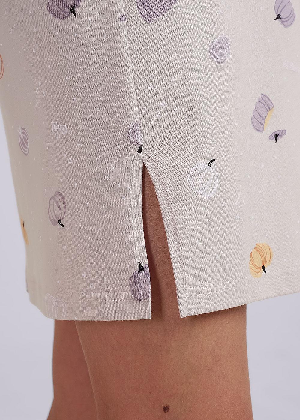 Сорочка ночная из хлопкового трикотажного полотна. Округлая горловина с окантовкой, спереди планка с пуговицами. Короткий рукав реглан. Внизу боковые разрезы.