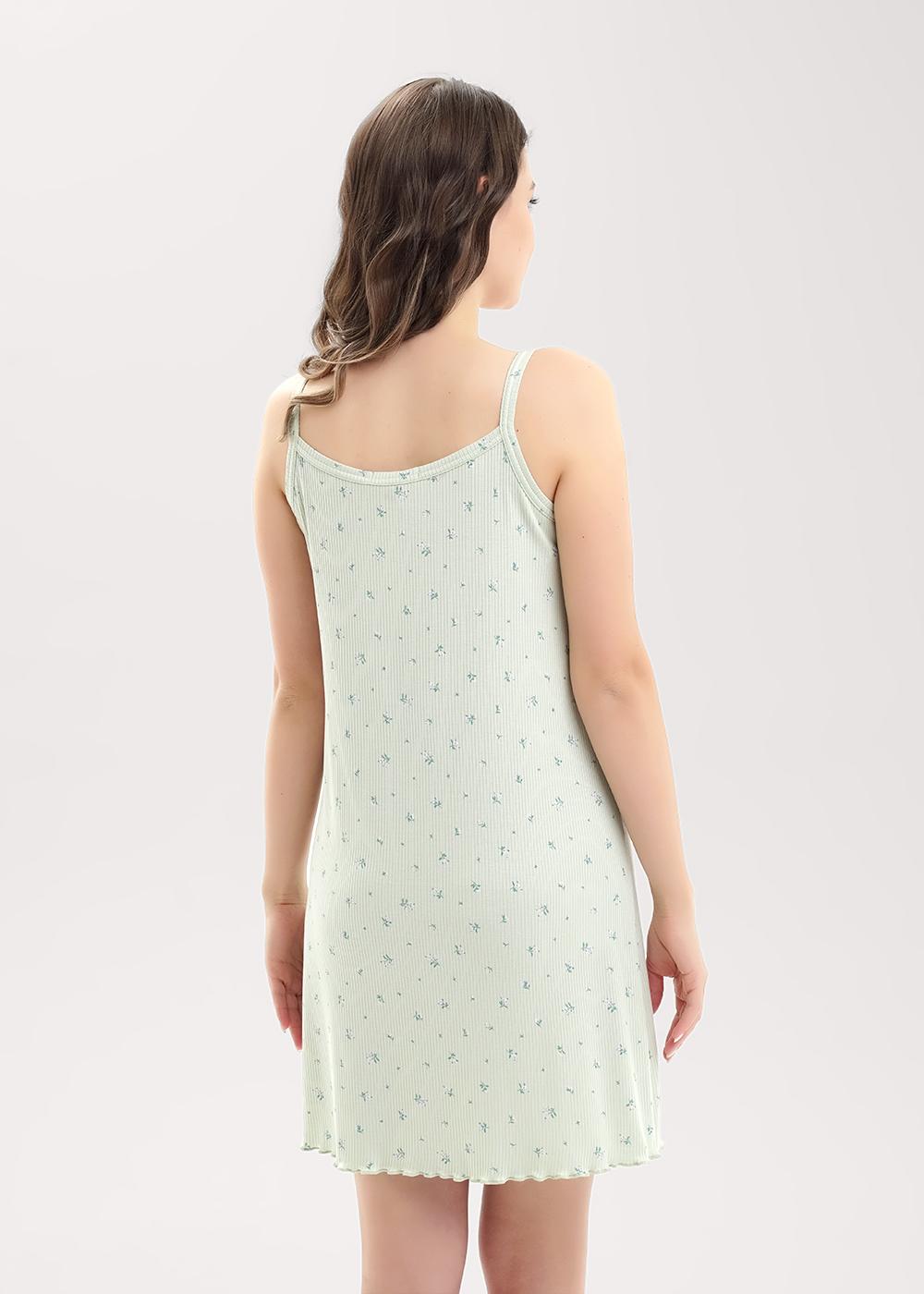 Сорочка ночная женская А-образного силуэта из эластичного полотна кашкорсе с вискозой в составе. Длиной чуть ниже колена, на узких бретелях. По горловине и пройме окантовка. На детали переда принт. По низу изделия мелкий оверлок.