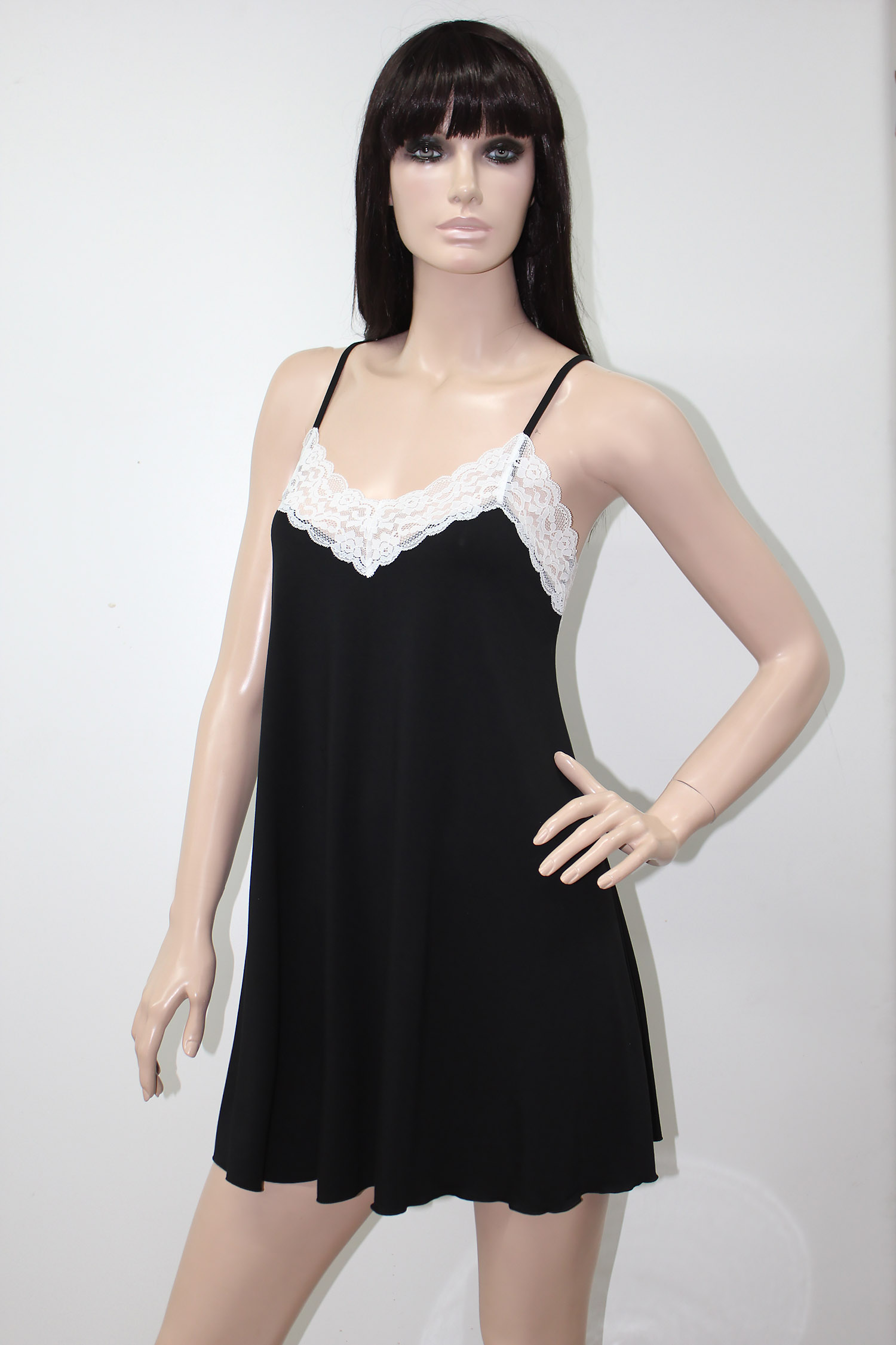 Женская сорочка выполнена из однотонной мягкой и приятной к телу вискозы молочного цвета. Модель приталенная, талия, зона декольте и бретели декорированы ажурным кружевом. Длина до колен.