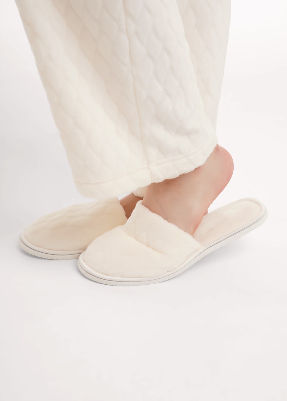 Домашние тапочки с закрытым носом из фактурного трикотажного полотна велсофт. Толстая подошва.