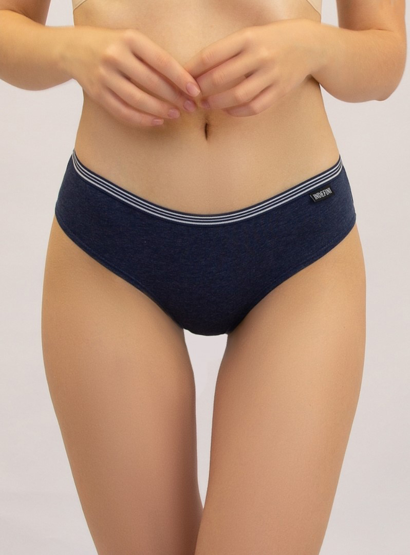 Женские трусы от торговой марки Индефини. Трусы-шорты из хлопка, синего цвета, на мягкой резинке, средней посадки.