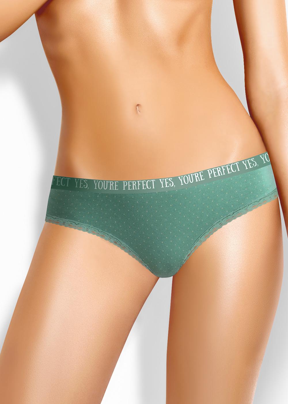 Трусы "бикини" комфортной посадки из хлопкового трикотажного полотна с добавлением эластана. По талии жаккардовая резинка, по ножке кружево.