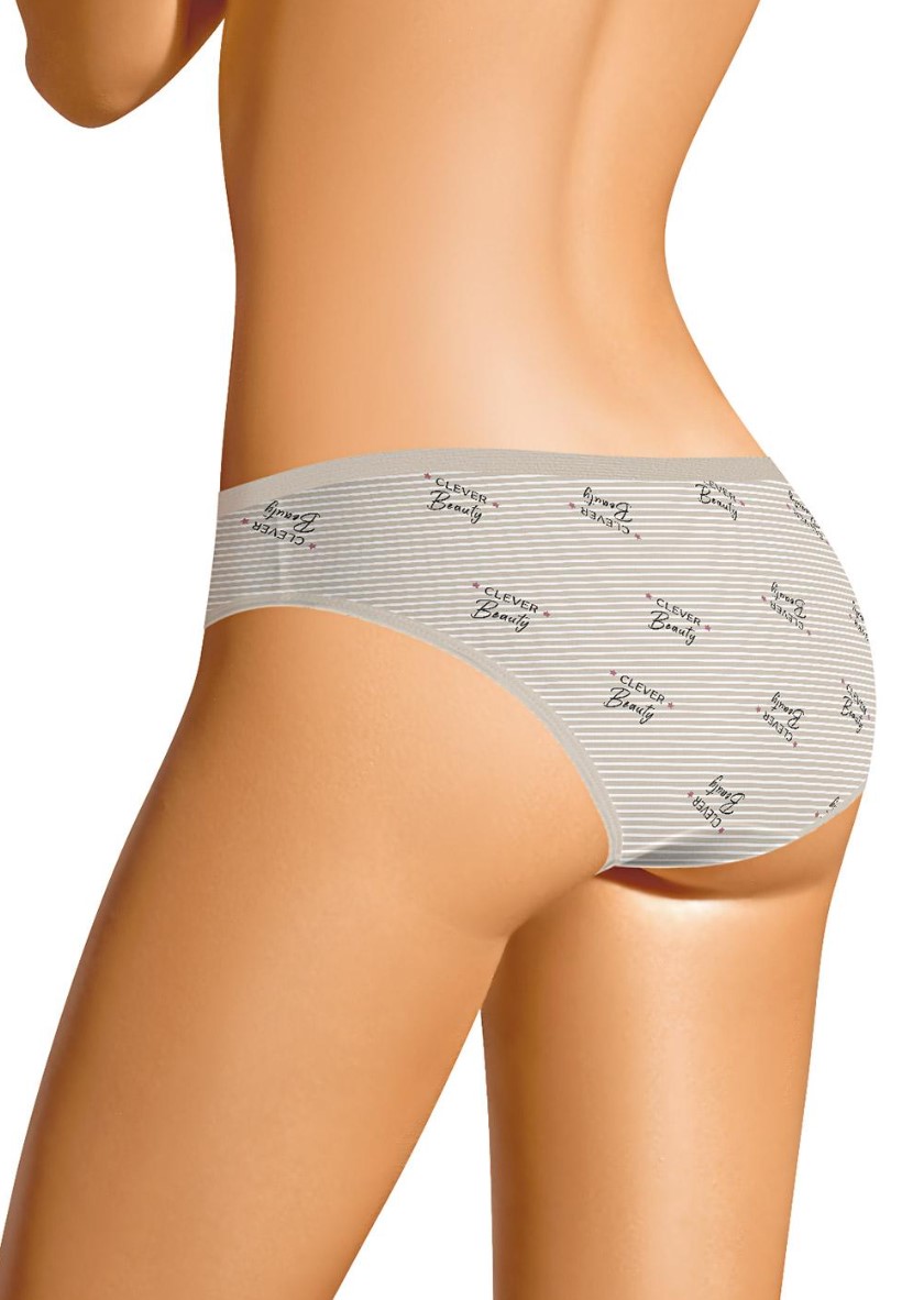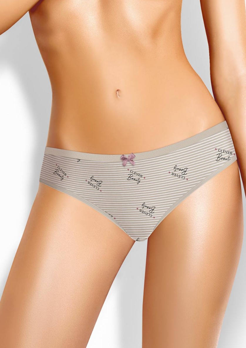 Женские трусы бикини Clever изготовлены из хлопкового полотна в набивку с добавлением эластана. Шелковистая экологичная ткань приятна для тела, прекрасно пропускает воздух, впитывает воду, не электризуется и подходит для чувствительной кожи. Добавка эластана в женское нижнее белье придает им эластичность и гарантирует, что женские трусы не будут скатываться и не полиняют даже после многочисленных стирок. Трусы незаметны под одеждой и одинаково комфортны для отдыха, для бега, для ходьбы и для фитнеса.