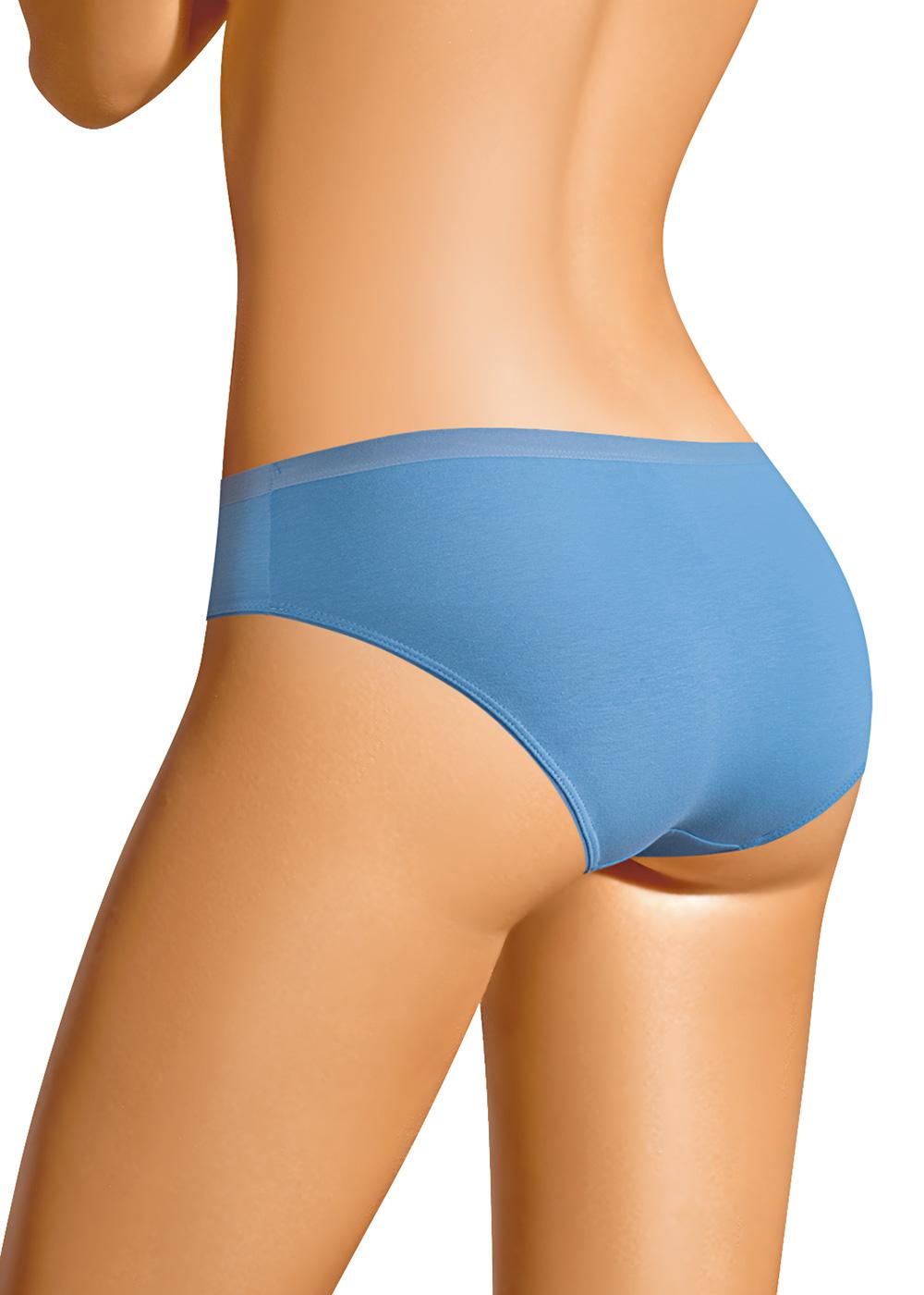 Трусы бикини комфортной посадки из хлопкового полотна. По талии окантовочная резинка, по ножке резинка кантом. Завершает дизайн бант.