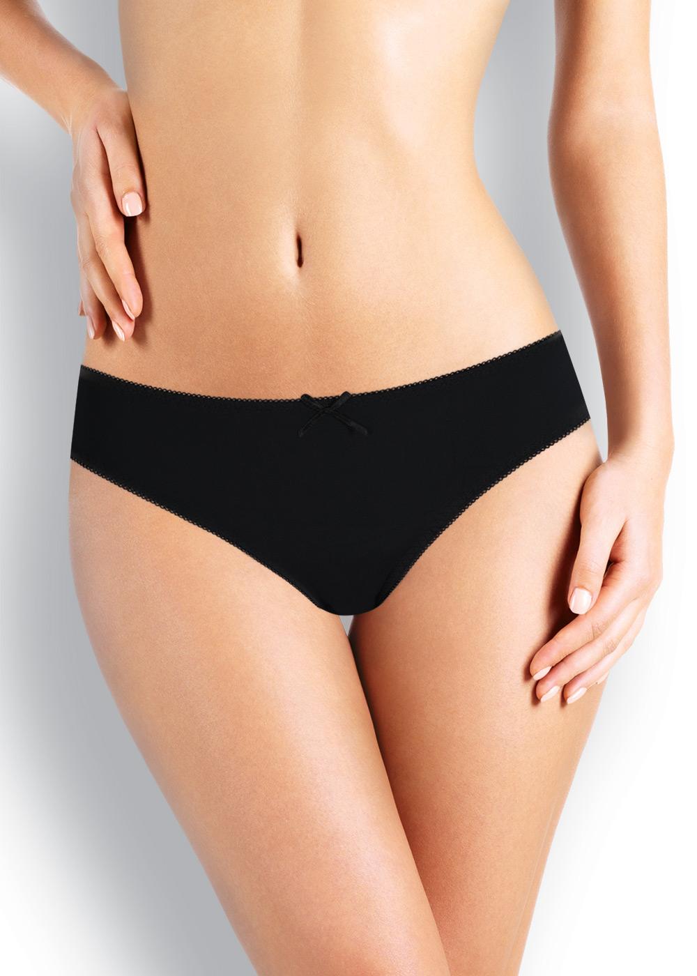 Трусы-бикини женские из полиамида. Обработка краев - ажурная резинка с фестоном. По спинке вставки из кружева. По переду бант. Производство Китай.