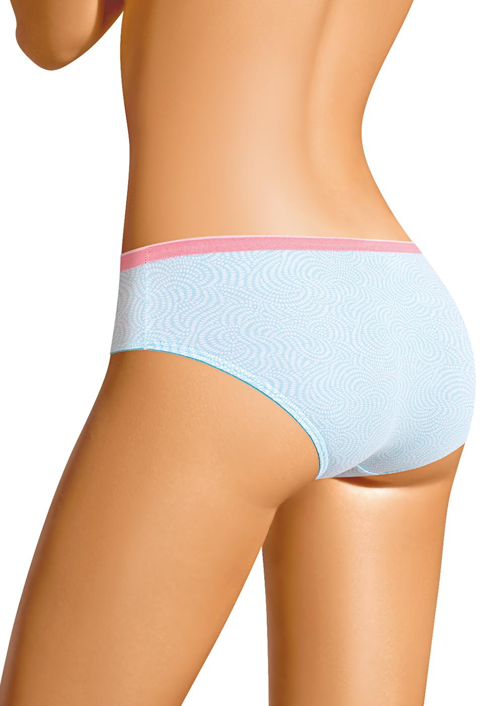 Трусы бикини женские из эластичного хлопкового полотна. Обработка краев по талии и ноге - окантовочная резинка. По переду атласный бант,принт.