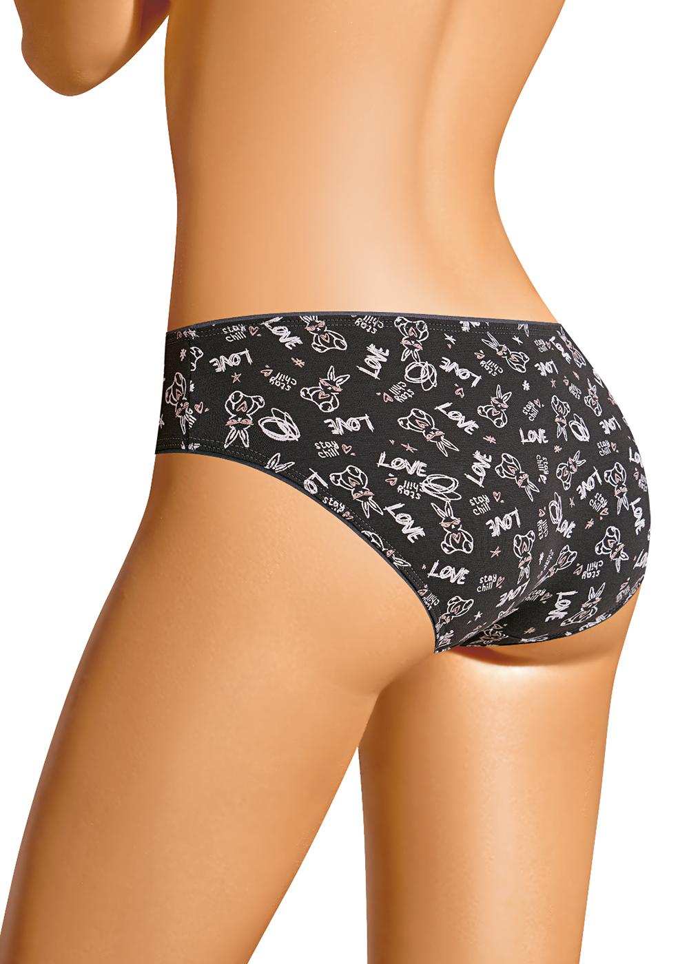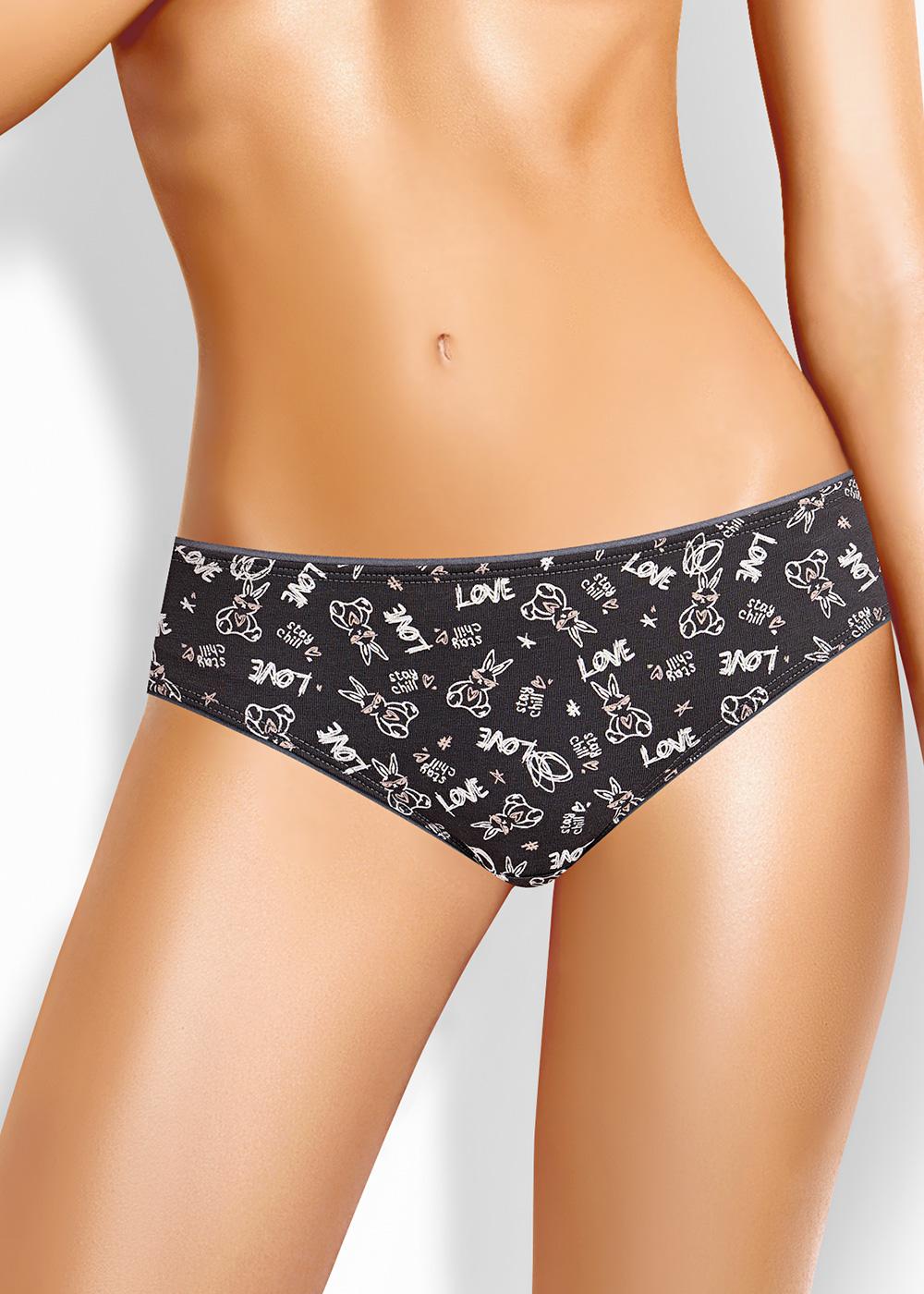 Трусы бикини женские из эластичного хлопкового полотна. Обработка краев по талии резинка с кантом, по ноге - п/окантовка.