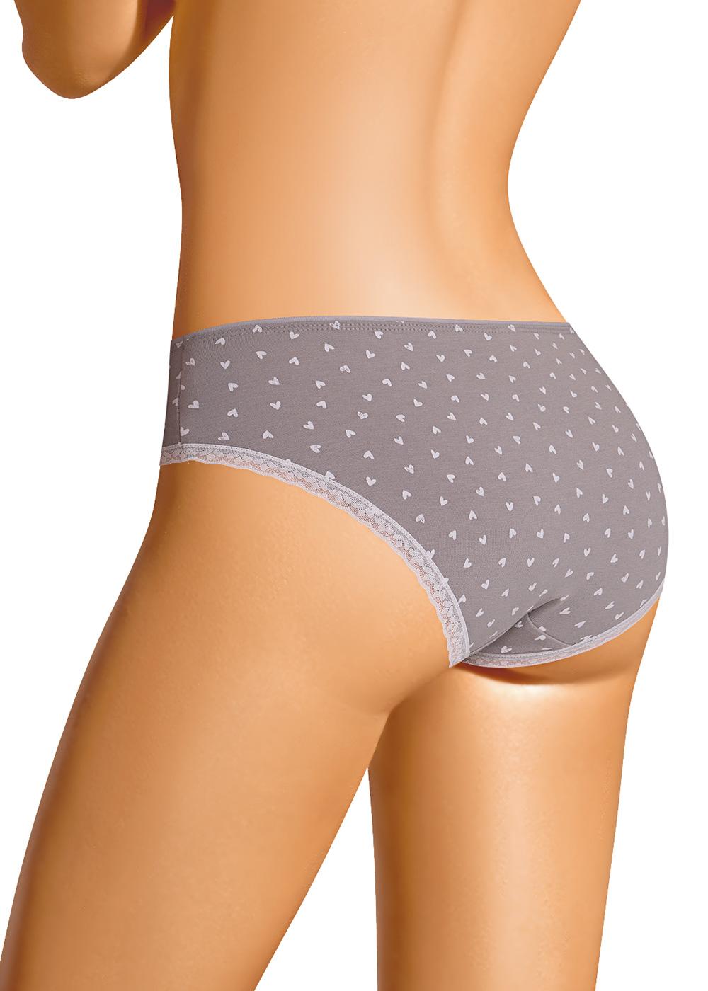 Трусы бикини женские из эластичного хлопкового полотна. Обработка краев по талии резинка с кантом, по ноге - узкое кружево. По переду атласный бант.