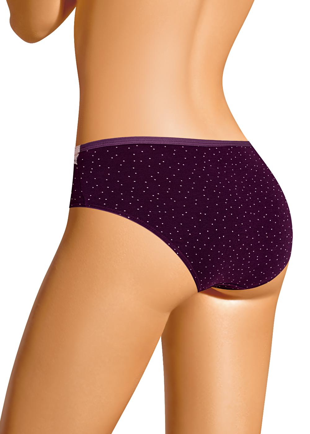 Трусы бикини женские из эластичного хлопкового полотна. Обработка краев по талии переда - кружево с внутренней резинкой, по талии спинки - окантовка,по ноге - полуокантовка.