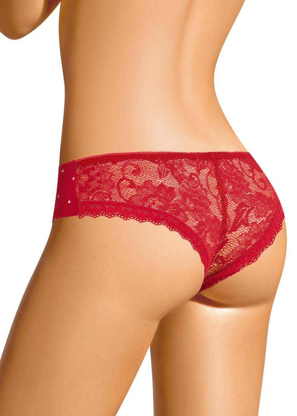 Трусы-бразилиано женские из эластичного хлопкового полотна. По спинке кружевное полотно. Обработка краев по талии - резинка с фестоном. По переду бант.