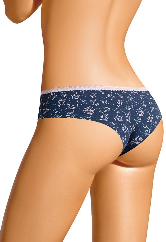 Трусы бразилиана женские из эластичного хлопкового полотна. Обработка краев по талии - ажурная резинка, по ноге - подгибка. По переду атласный бант.