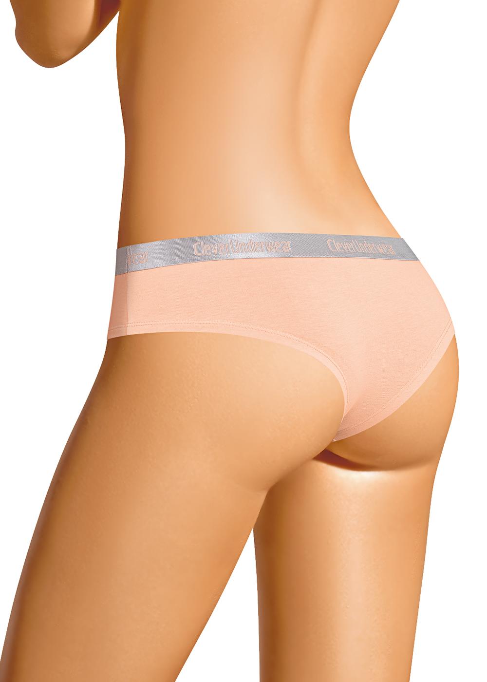 Трусы бразилиана женские из эластичного хлопкового полотна. Обработка краев по талии жаккардовая резинка, по ноге подгибка.