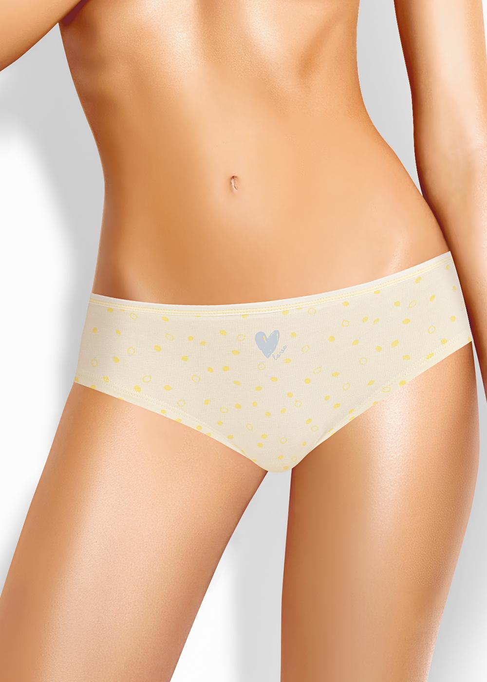 Трусы бразилиана женские из эластичного хлопкового полотна. Обработка краев по талии окантовочная резинка с застилом,по ноге - подгибка. По переду принт.