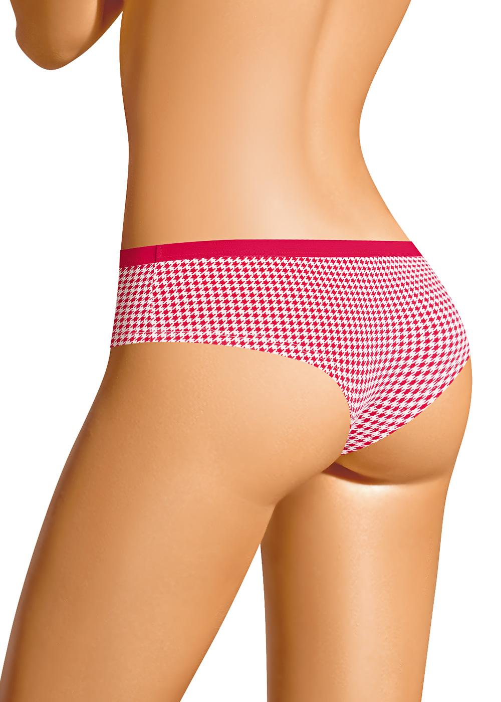 Трусы бразилиана женские из эластичного хлопкового полотна. Обработка краев по талии - окантовочная резинка, по ноге - подгибка. По переду атласный бант.