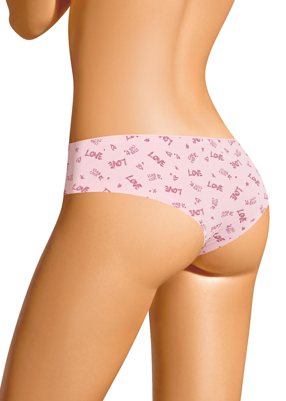 Трусы бразилиана женские из эластичного хлопкового полотна. Обработка краев по талии резинка с кантом, по ноге - подгибка.