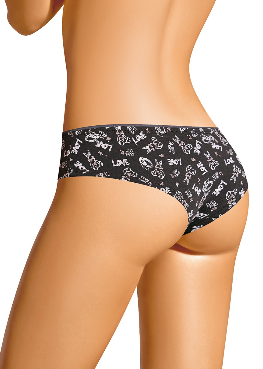 Трусы бразилиана женские из эластичного хлопкового полотна. Обработка краев по талии резинка с кантом, по ноге - подгибка.