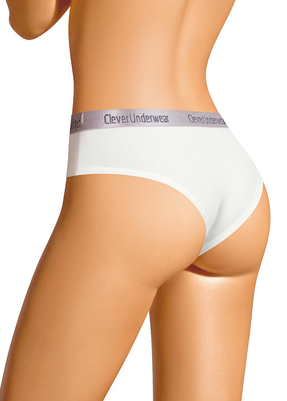 Трусы бразилиана женские из эластичного хлопкового полотна. По переду -резы с двойной центральной частью. Обработка краев по талии - жаккардовая резинка, по ноге - обтачка узкая на спецоборудовании.