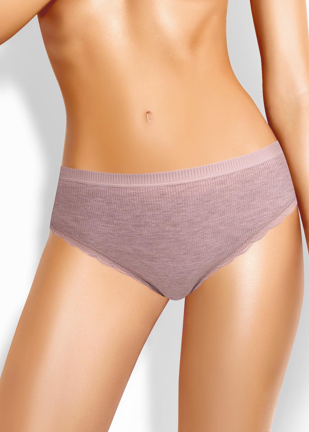 Трусы бразилиана женские из эластичного вискозного полотна - кашкорсе лапша. Обработка краев по талии - жаккардовая резинка, по ноге - узкое кружево.