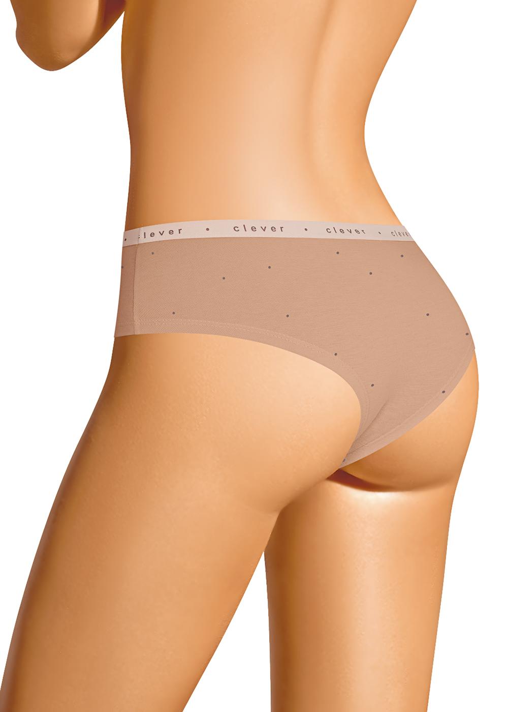 Трусы бразилиана женские из эластичного хлопкового полотна. Обработка краев по талии резинка с принтом, по ноге - подгибка.