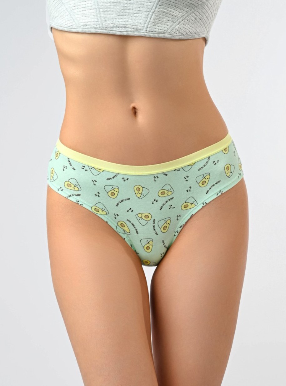 Трусы из хлопка, салатного цвета, с принтом, на мягкой резинке, средней посадки.