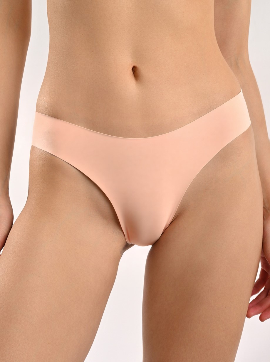 Женские бесшовные трусы бразилиано— комфортная модель на каждый день. Базовый телесный цвет, отсутствие швов на поясе и низкая посадка — трусы легко сочетаются с гардеробом. Такое белье не натирает и незаметно под одеждой. Сзади имеется шов, проходящий посередине ягодиц. Сшиты из качественного хлопкового трикотажа, небольшое количество эластана в составе делает белье долговечным и тянущимся.
