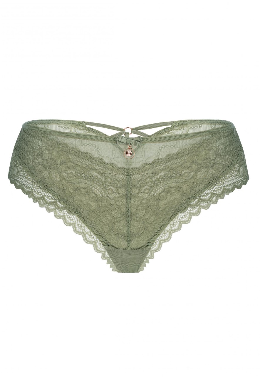 Кружевные трусы-бразилиана со средней посадкой. Передняя деталь из кружева на подкладке из мягкой сетки. Задняя деталь выполнена из кружева.