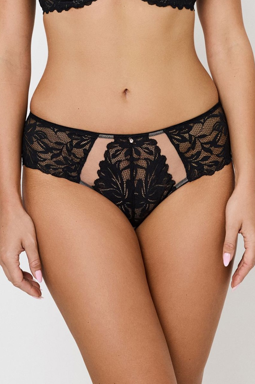 Трусы бразильяно BELLA BLACK от европейского производителя Subtille. Выполнены из кружева и микросетки. Ластовица хлопковая. Декор - подвеска.