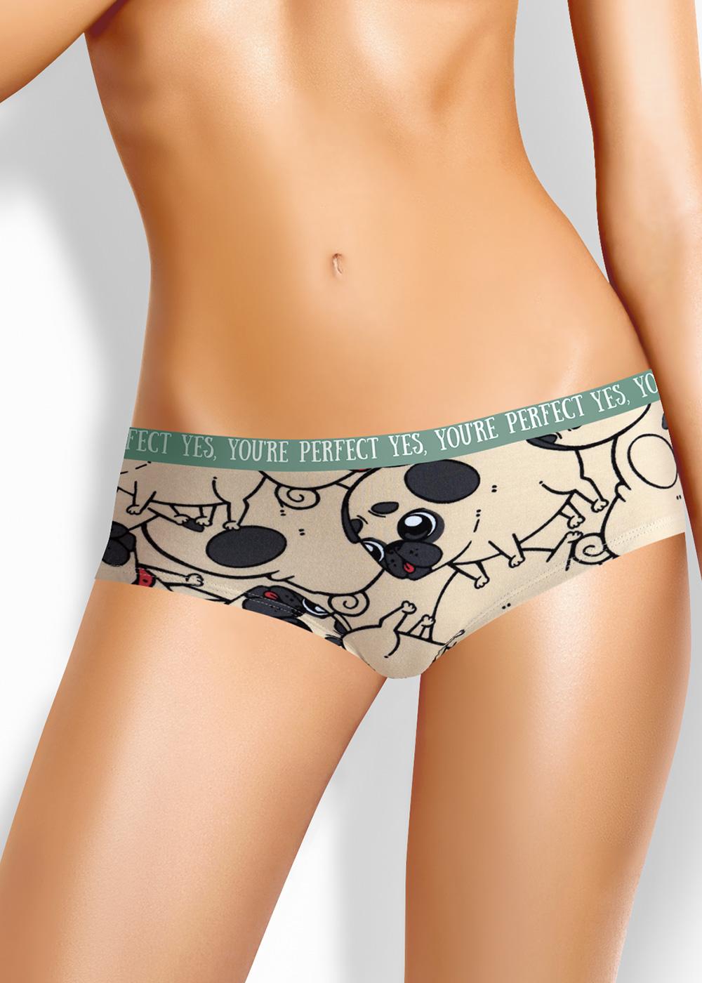 Трусы "шорты" комфортной посадки из хлопкового трикотажного полотна с добавлением эластана в набивку. По талии резинка с принтом.