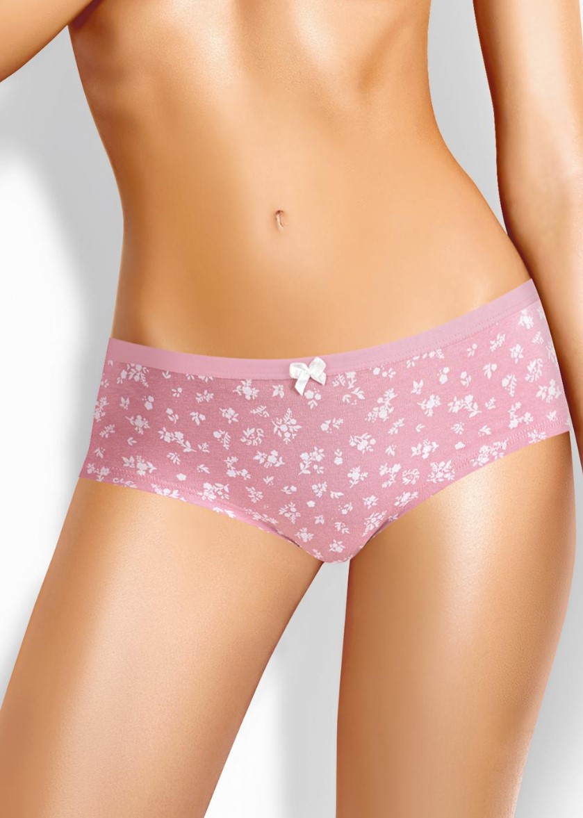 Трусы шорты комфортной посадки из хлопкового полотна с добавлением эластана . По талии окантовочная резинка, спереди декорированы бантиком