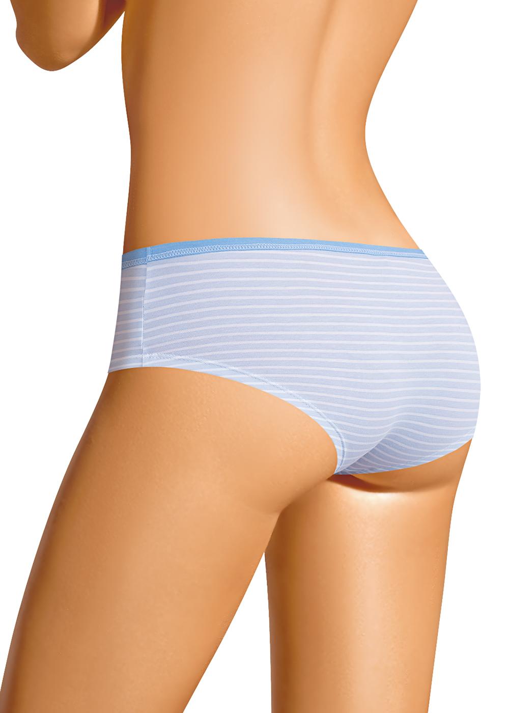 Трусы шорты женские из эластичного хлопкового полотна. Обработка краев по талии окантовочная резинка с застилом, по ноге - подгибка. По переду пуговица.