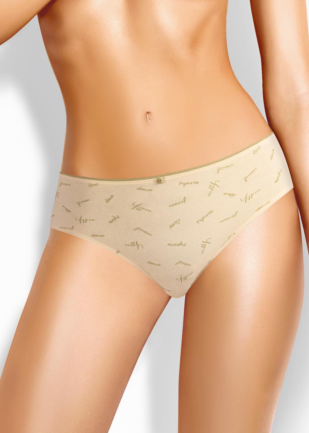 Трусы слипы из хлопкового полотна с добавлением эластана комфортной посадки. По талии ажурная резинка, по ножке резинка кантом. На детали переда по талии декорированы пуговкой.