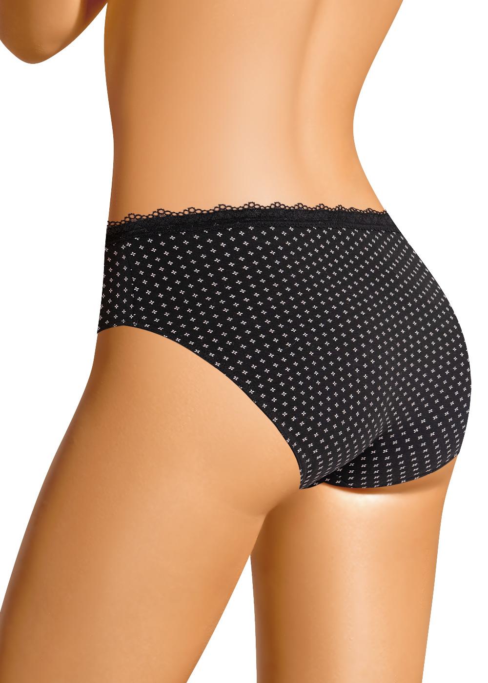 Трусы-слипы женские из эластичного хлопкового полотна. Обработка краев по талии - кружево, по ноге - окантовка. По переду бант.