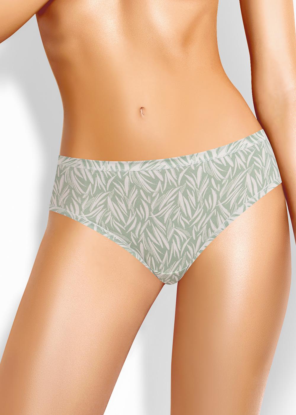Трусы слипы женские из эластичного хлопкового полотна. Обработка краев по талии - обтачка с внутренней резинкой, по ноге - обтачка. Обработка "зубы" по талии и "застил" по ноге.