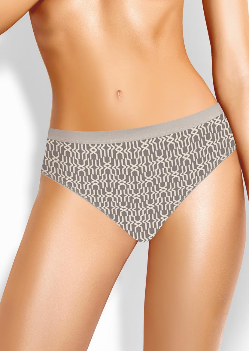Трусы слипы-танга женские из эластичного хлопкового полотна. Обработка краев по талии - жаккардовая резинка, по ноге - полуокантовка.
