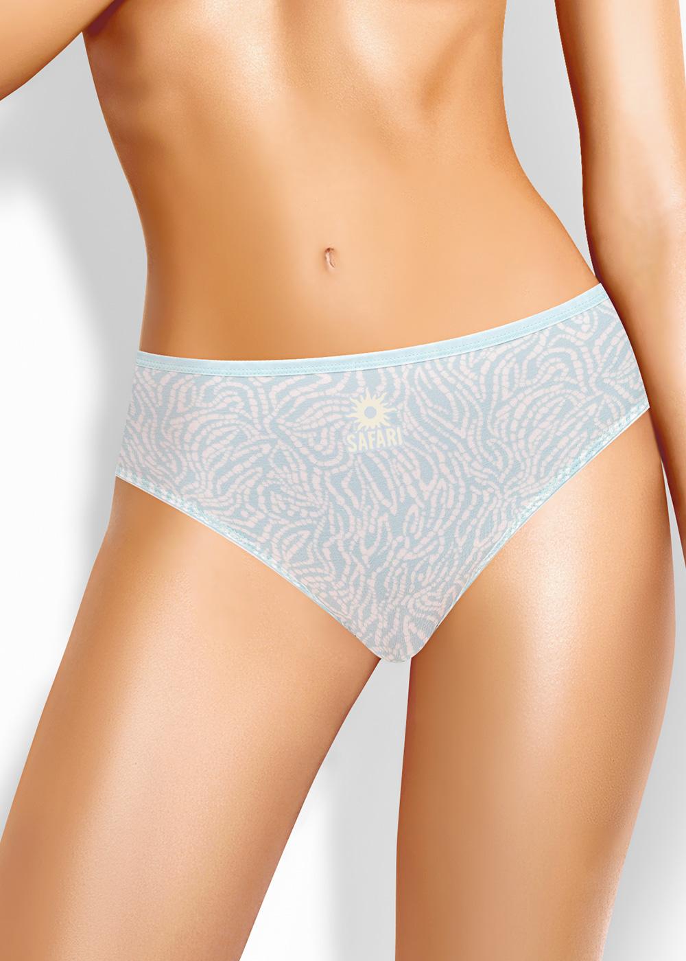 Трусы слипы женские из эластичного хлопкового полотна. Обработка краев по талии - окантовочная резинка с застилом, по ноге - полуокантовка. Спереди принт.