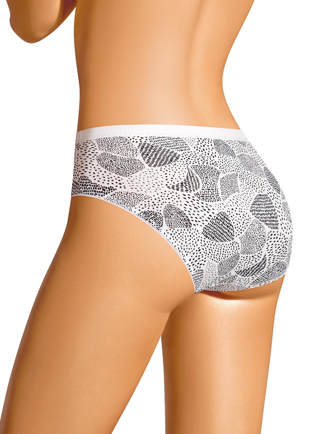 Трусы слипы женские из эластичного хлопкового полотна. Обработка краев по талии - жаккардовая резинка, по ноге - полуокантовка. По переду атласный бант.