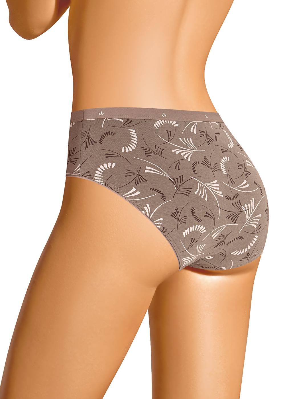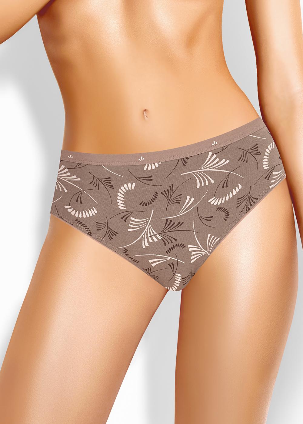 Трусы слипы женские из эластичного хлопкового полотна. Обработка краев по талии резинка с принтом, по ноге - полуокантовка.