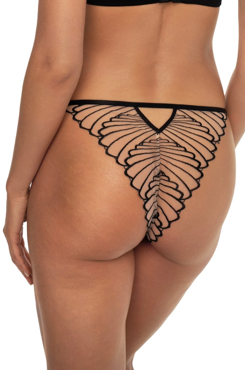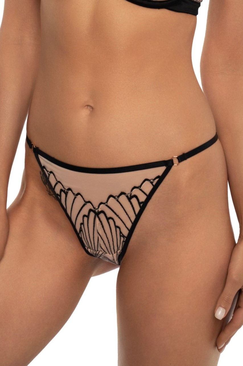 Трусы слипы из микросетки с вышивкой. Декоративный стреп на поясе с золотым аксессуаром. Ластовица хлопковая.