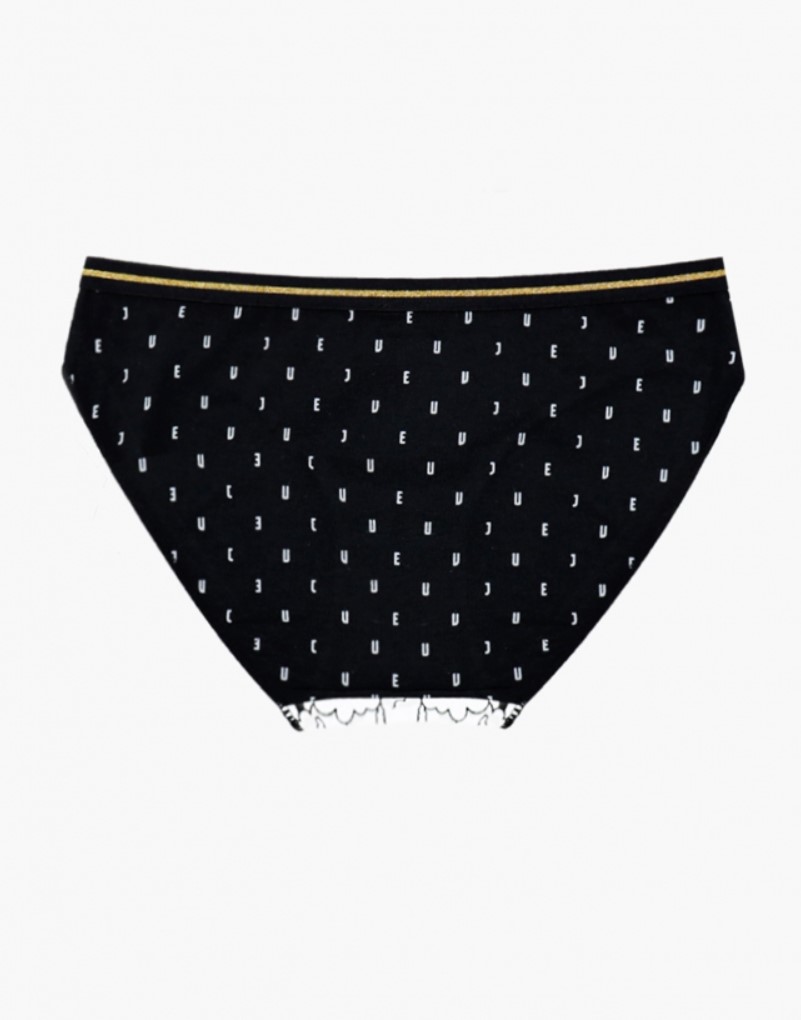 Женские трусы от торговой марки Индефини. Трусы-слипы из хлопка, белого цвета с принтом спереди, черного цвета с принтом сзади, на мягкой резинке.